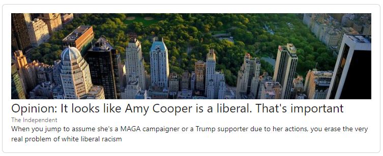 Just about every liberal I know would have assumed Amy Cooper a Trump supporter, but she reminds me a lot of many NorCal liberals I know.