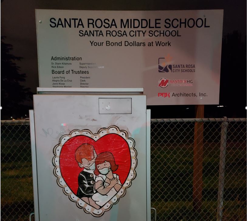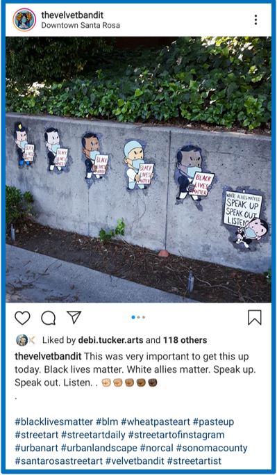 As a final note, please consider more details on my story from Saturday. I had an encounter with police. Due to SIP, our local college campus is closed and “locked down.” My friend and I wanted to paste art on a location whose closest parking location was on that campus.