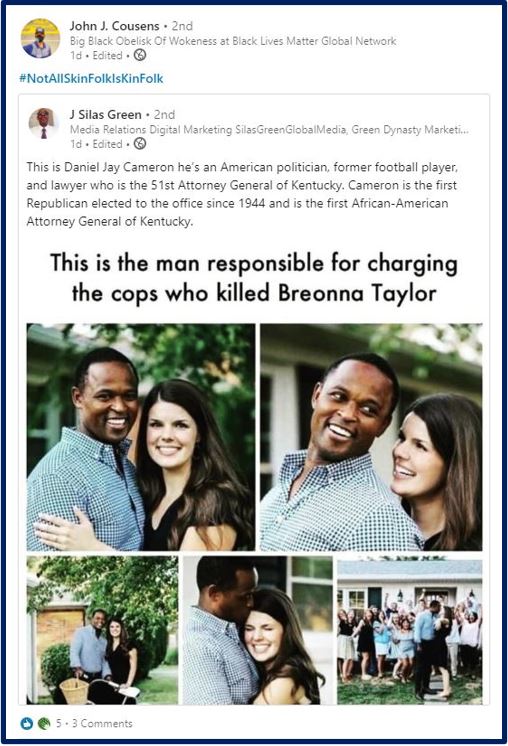 Did you catch that hashtag? Some people might call this quite hateful, and racist, from Black Lives Matter. Is that part of the re-learning we need to do? Learn to ostracize others who aren’t “loyal enough” to their own race? What’s the insinuation in the tone here? To inform us, why? Hate?
