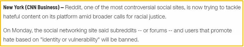 However there’s also shady invoking of “BLM” and “rights” or other buzz words going on, being used as a weapon in the headlines for competitive advantages in ways that sets those very same ideals back, in actuality. What’s happening to Facebook and Reddit stick out in this way to me. Beware!