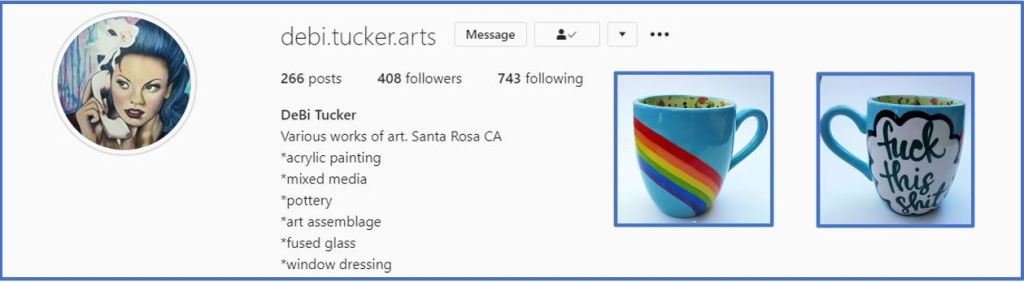 DeBi creates all kinds of awesome commercial art work – the taglines are real zingers on the mugs!
